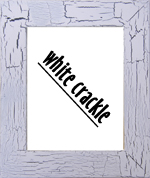 3. Crackle--a process involving painting with a base coat (either brown or black depending), application of a crackling agent, and then hand painting with the top color (either white, ivory, brown, sage, mustard, or barn red). While the result is a nice "crackled" look, the paint doesn't flake off like it does with truly old crackling paint.
